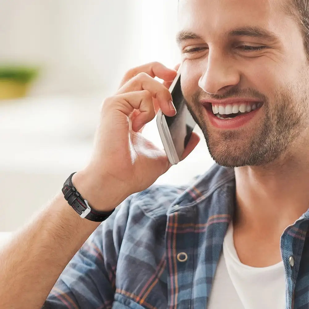 - Premium Genuine Leather: Made from high-quality genuine leather that is soft, durable, and develops a beautiful patina over time. The strap is finished with precise stitching and a classic stainless steel buckle.