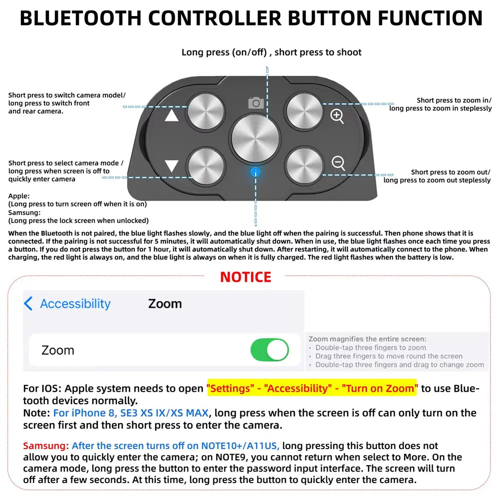 - Full Bluetooth Camera Control: The detachable Bluetooth controller lets you snap photos, record video, and zoom without needing to touch the screen.